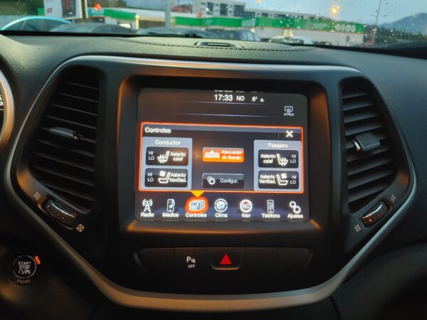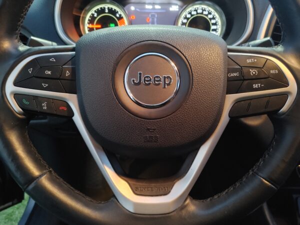 JEEP CHEROKEE LIMITED 4X2, Dispone de: Caja manual de 6 velocidades, pantalla multifunción con navegador GPS, Radio lector CD DVD, Conectividad BLUETOOTH, Puertos USB Y AUX, Ranura Micro SD, Climatizador digital bizona, Start Stop, Volante multifunción, Control de Velocidad adaptativo, Sensores de aparcamiento traseros y delanteros, con Cámara Marcha Atrás, Sensor de Luces Automáticas y lluvia, Faros XENON, Retrovisores Abatibles y de ajuste eléctrico, Portón trasero eléctrico, Asientos Calefactables en Cuero, y de Ajuste eléctrico con memorizado, Llantas de aleación….